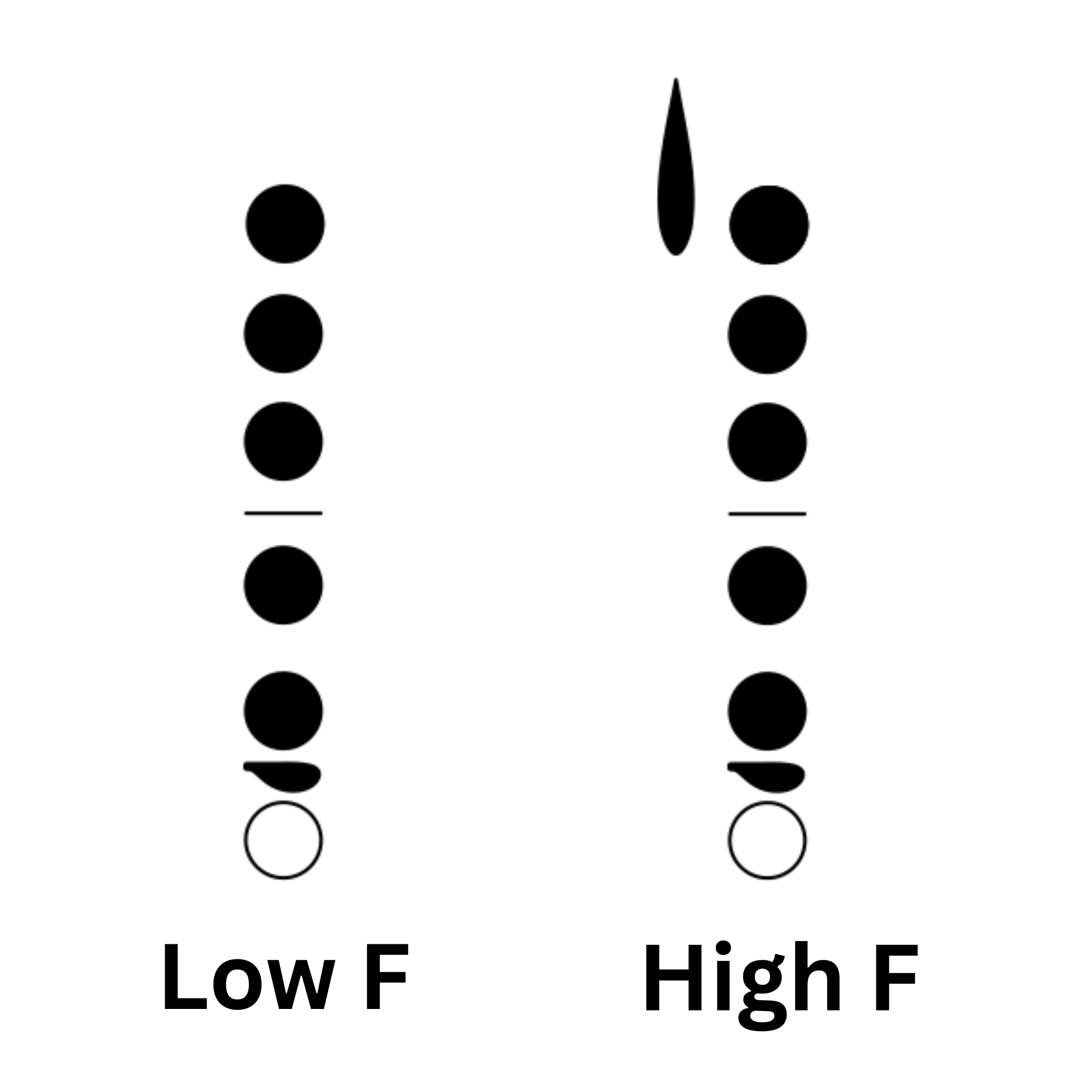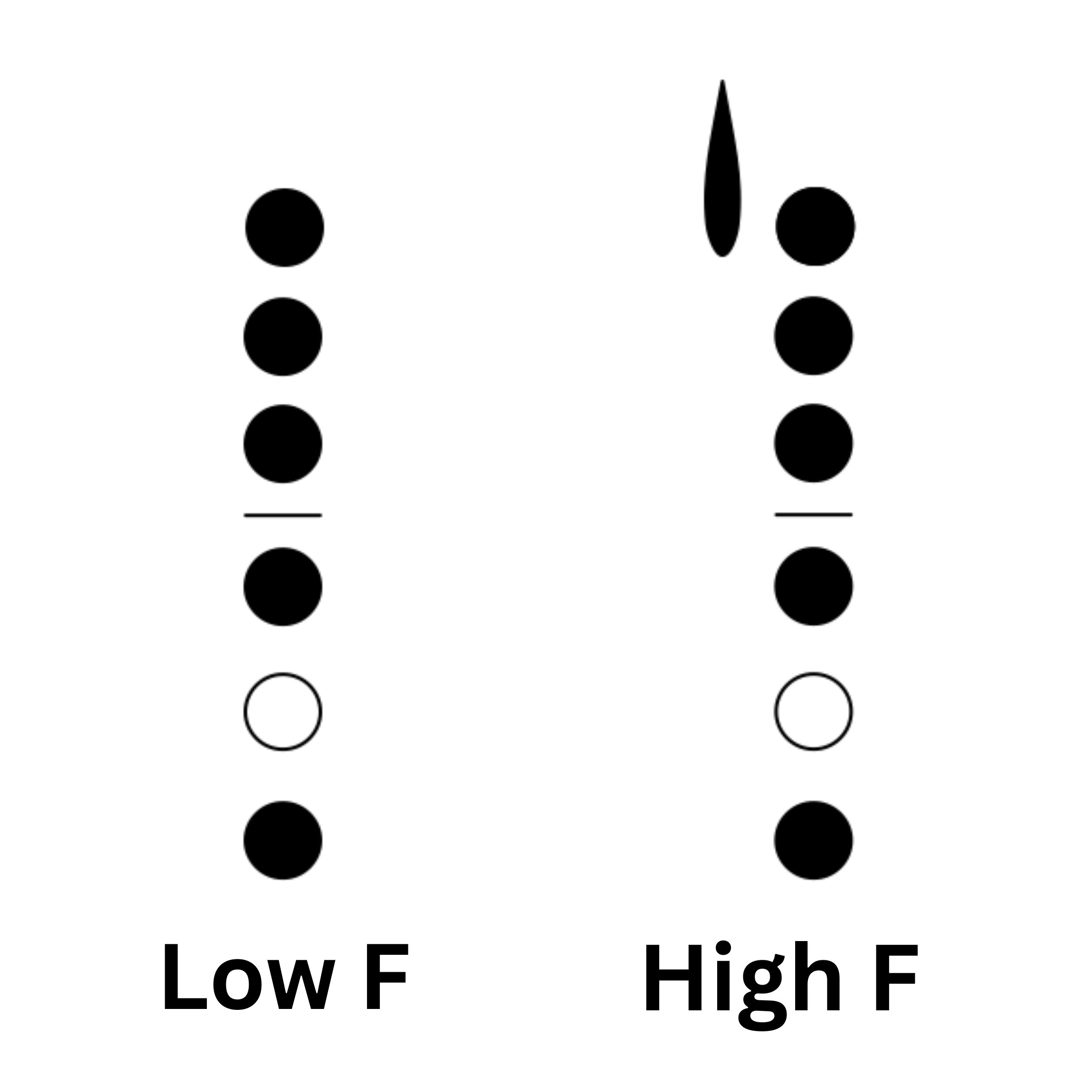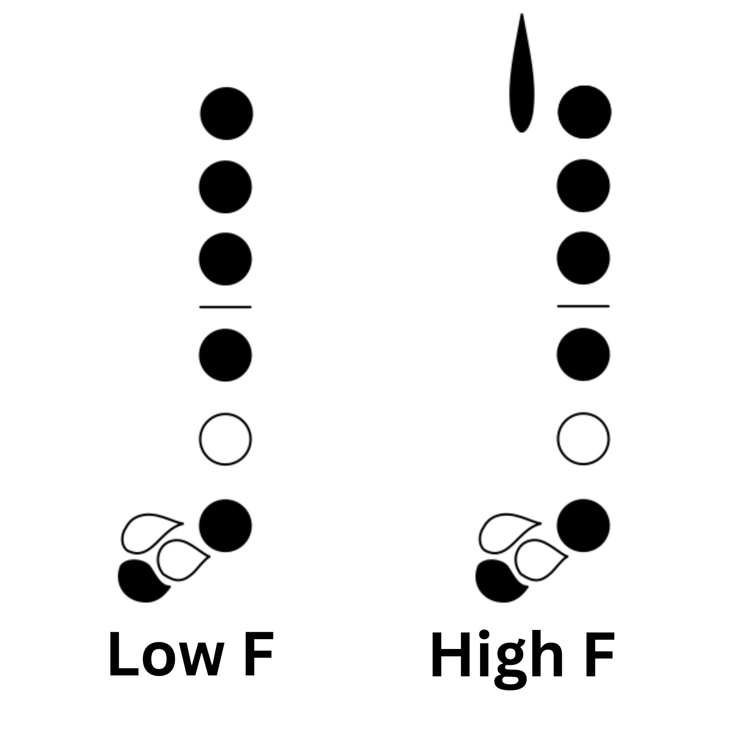 The Forked F resonance key is a small key on the side of an oboe that opens automatically whenever a Forked F is played. It was added in order to improve the intonation of Forked F. If your oboe does not have a Forked F Resonance key (see the diagram at the top of this article), you can add your E-flat key in order to improve the intonation. Here are the fingerings you can use for Forked F, if your oboe does not have a Forked F Resonance key: