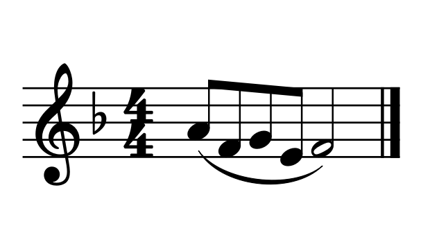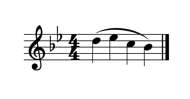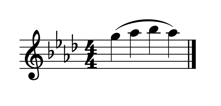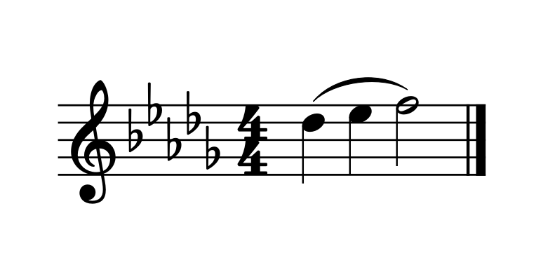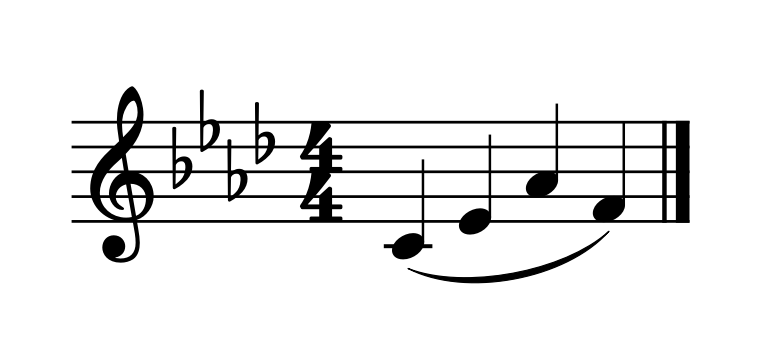 In the passage below, Alternate A-flat is needed. The Low C at the start requires that the E-flat be played as a Left E-flat, therefore requiring Alternate A-flat to follow. You can mark above the A-flat to remind yourself to use the alternate fingering. (As for the F in this example, using Alternate A-flat makes it possible to use any F fingering you would like, including Regular F, Forked F, or Left F!)
