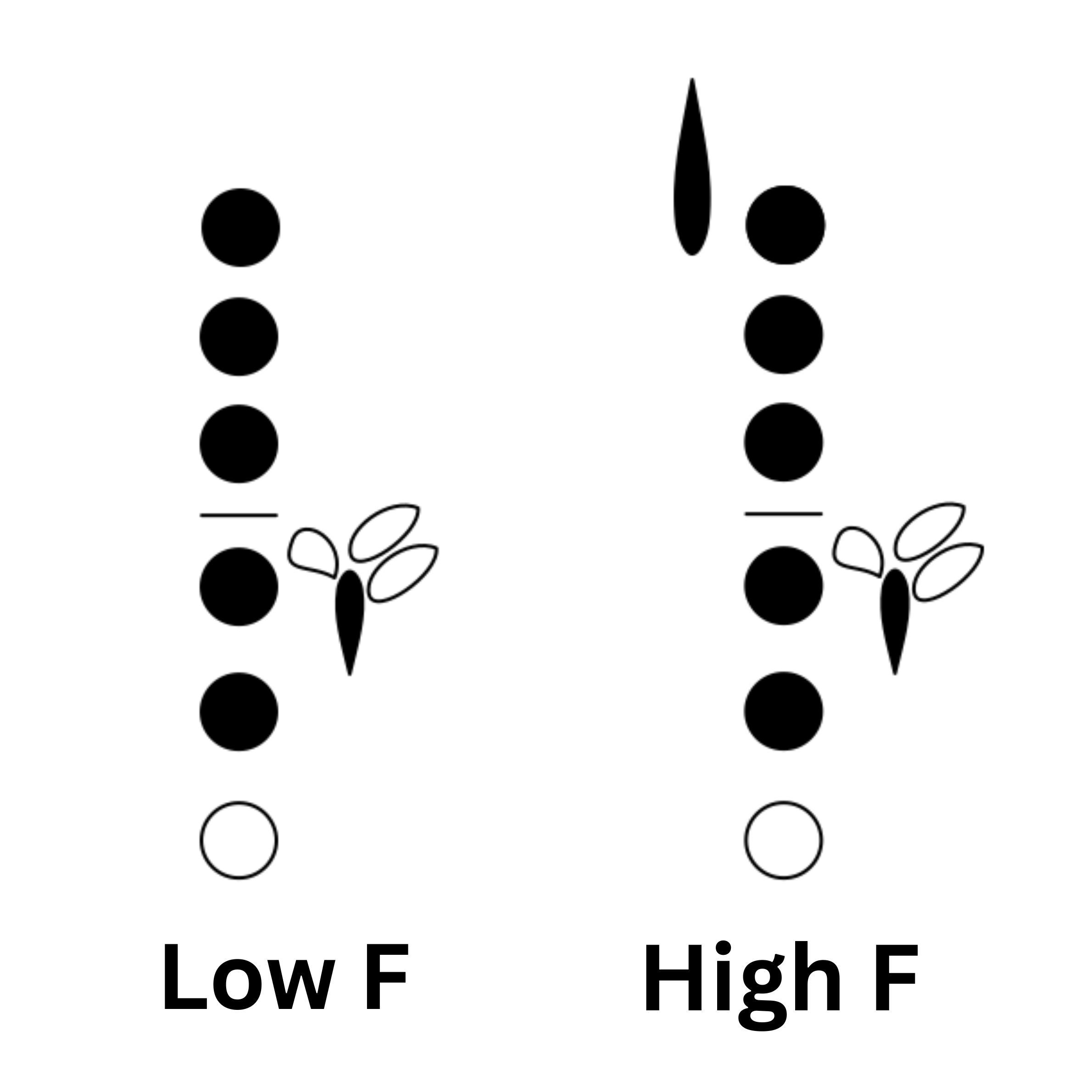 If your oboe does not have a Left F key, you will need to use Forked F in its place. There are also some cases where Left F is not possible, so even if you have a Left F key, you will still need to use Forked F sometimes. Here is the regular Forked F fingering: