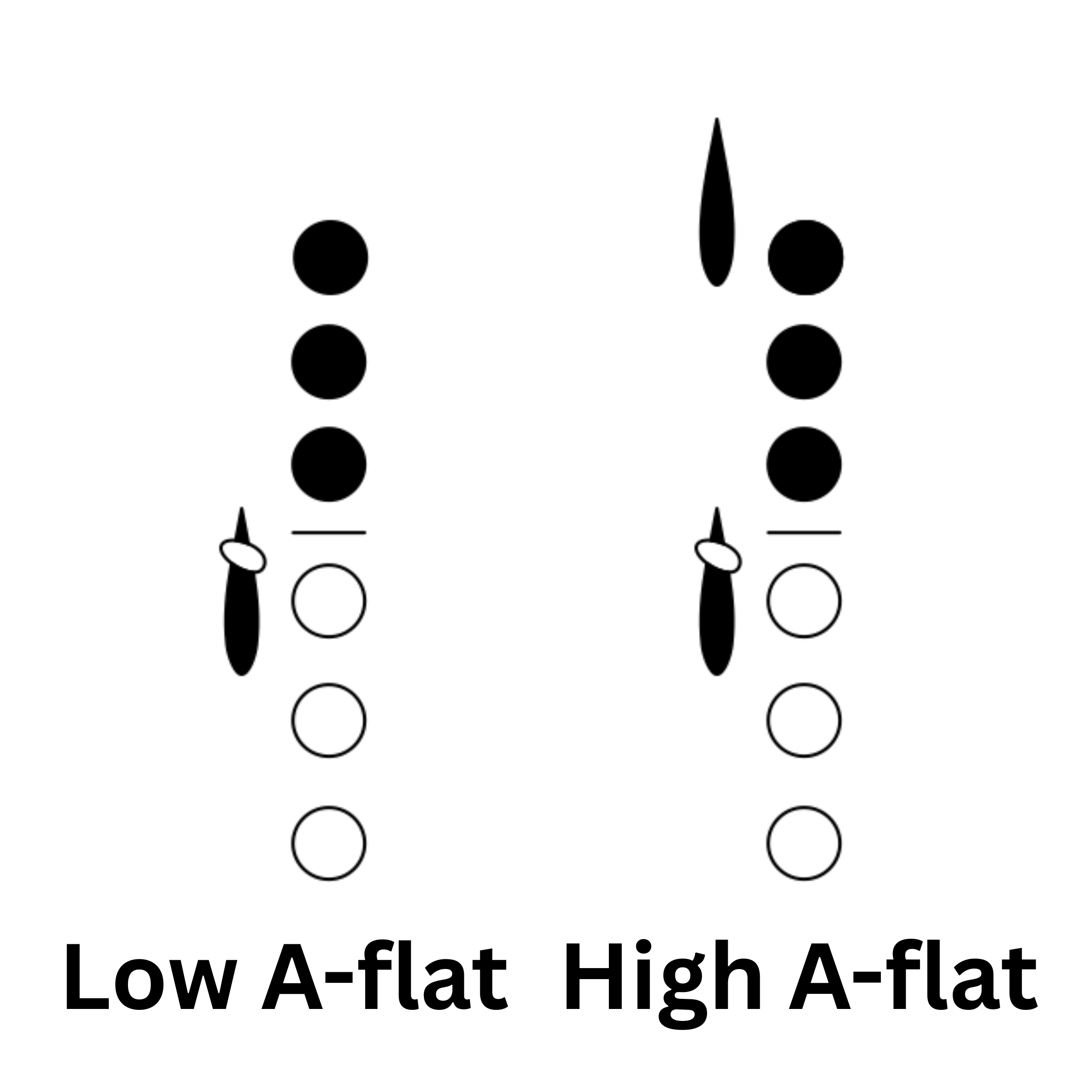 Occasionally, your left-hand pinky is needed for a note before or after an A-flat, such as Low B, Left F, or Left E-flat. In this case, you would need to use Alternate A-flat, which is played with the right-hand index finger: