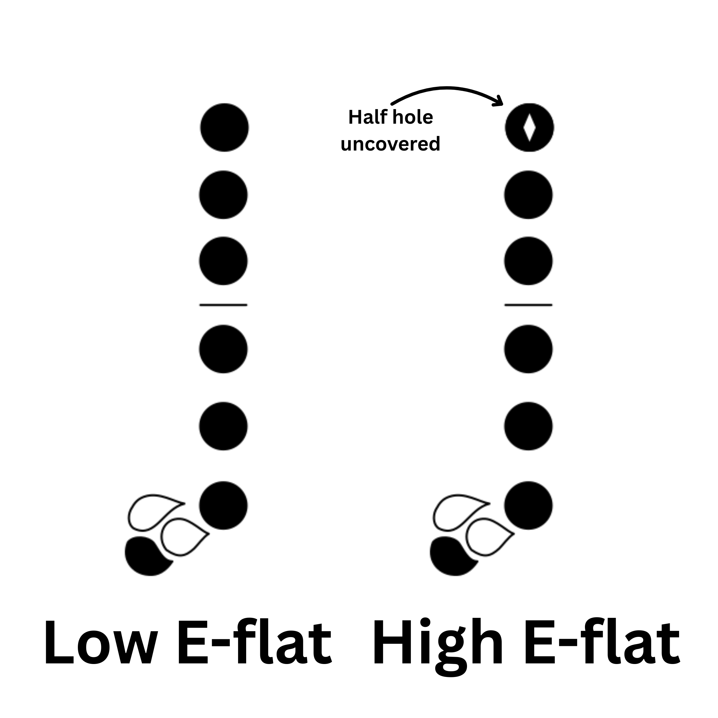 However, if you don’t have a low B-flat key, you can still play this note! First, line up the two holes in your bell to face left to right. Next, play a low B-natural: