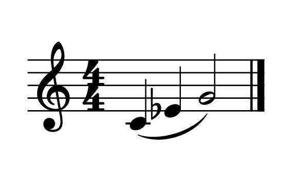 Whether or not you have a Left F key, you will need to use Forked F for the next example below. Playing D-flat next to E-flat requires use of the Left E-flat key (more on Left E-flat next), which therefore requires use of Forked F on the following note.