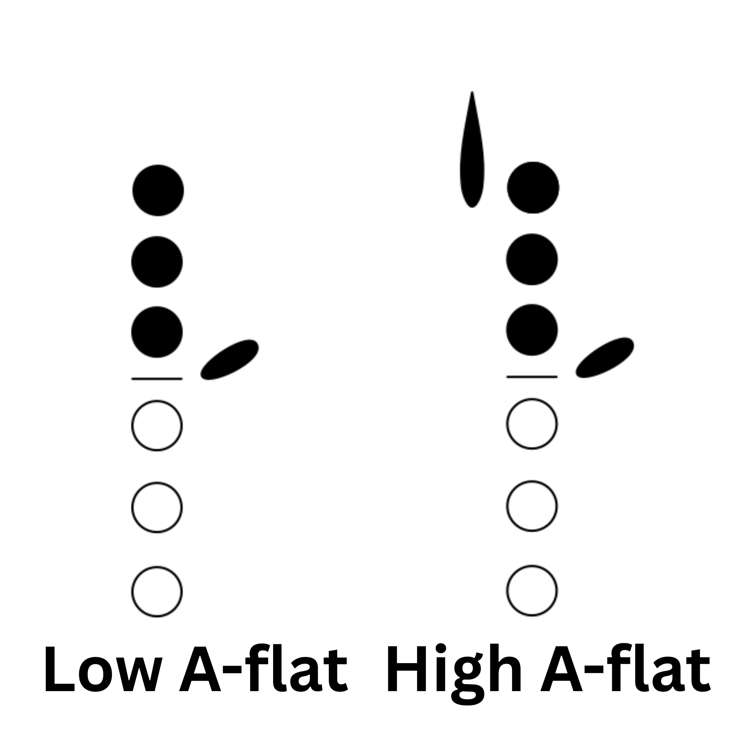 Although less common, there are also two ways to play A-flat. Regular A-flat is the most common one, and is played with the left-hand pinky: